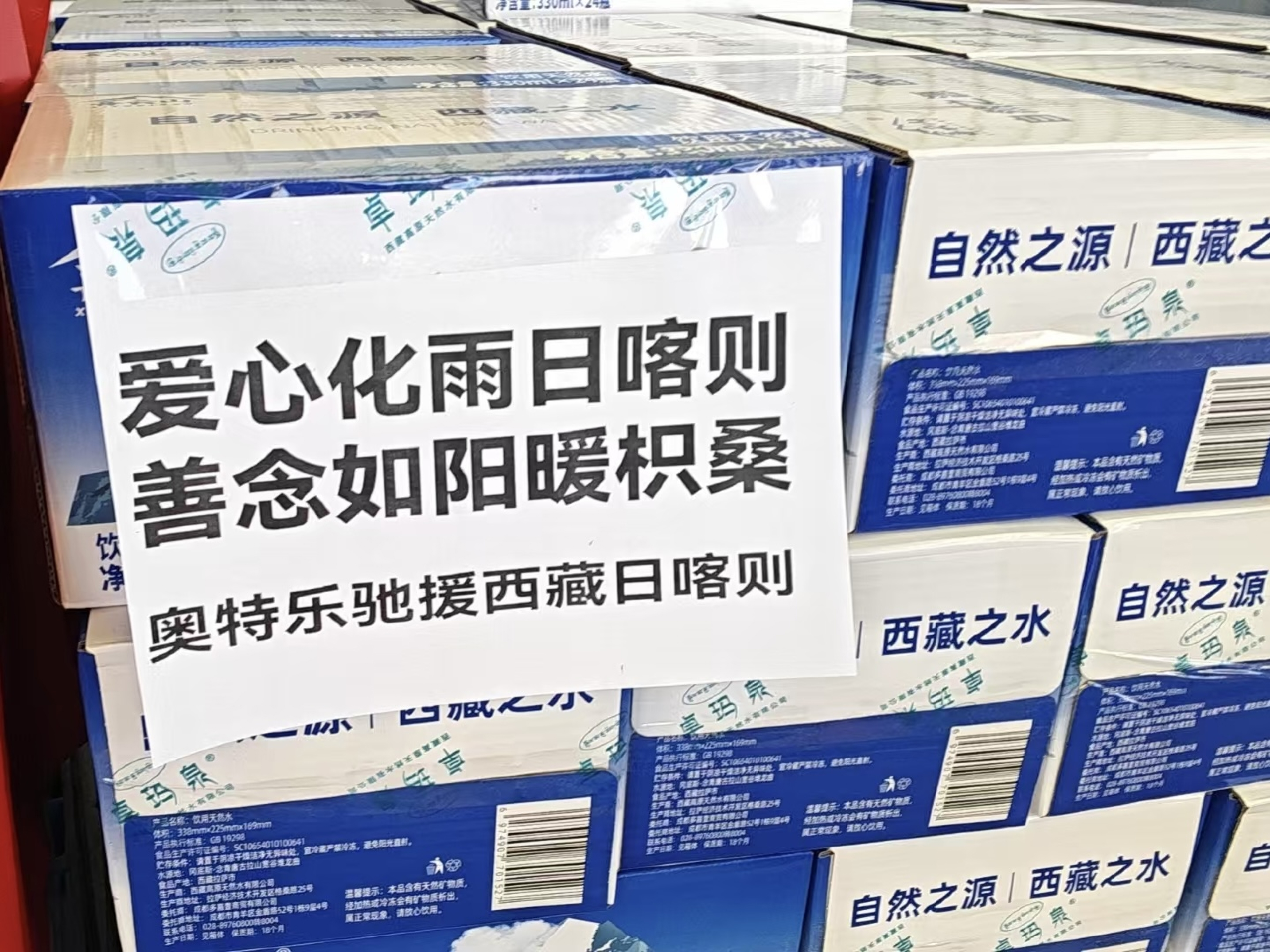 西藏日喀则地震,第一时间响应,加急生产物资 共计捐赠了总价值 50 万元的现金与3500箱物资